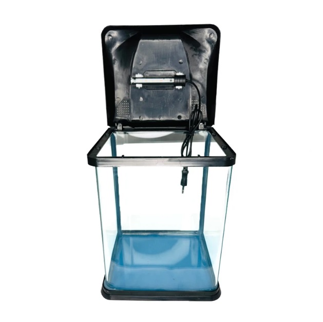 ابعاد این آکواریوم شامل طول 20 سانتیمتر، عرض 17 سانتیمتر و ارتفاع 26 سانتیمتر است که ابعاد مخزن شیشهای بدون قاب را تشکیل میدهد. شیشه استفاده شده در این محصول از نوع شفاف و مقاوم با ضخامت 4 میلیمتر میباشد که استحکام و دوام بالایی دارد.
