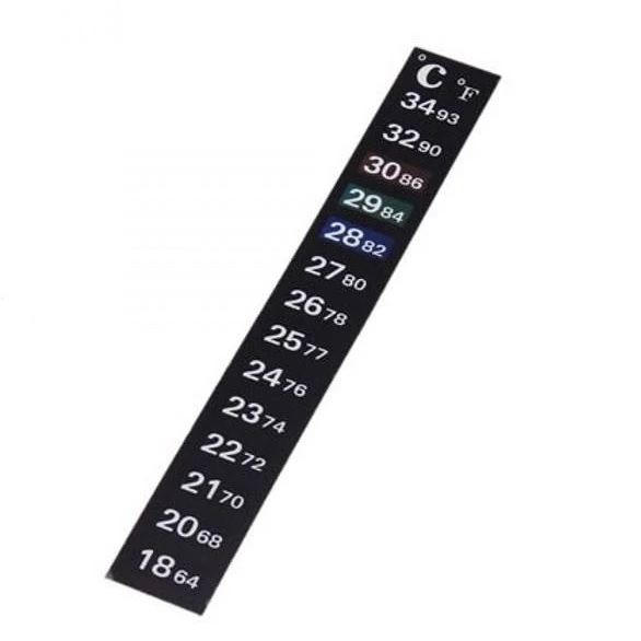 دماسنج نواری:دماسنج نواری بر روی جدار بیرونی شیشه آکواریوم نصب می شود و چون خواندن درجه ثبت شده بر روی آن، بسیار آسان است. در میان آکواریوم داران، بسیار پرطرفدار است اما این دماسنج چندان دقیق نیست و برای اینکه از درستی کارکرد آن مطمئن شویم باید حتماً نتایج حاصله را با نتایج بدست آمده از یک دماسنج شیشه ای (جیوه ای یا الکلی) مطابقت دهیم. بهتر است پس از نصب دماسنج نواری دیجیتال، یک دماسنج شیشه ای را به مدت 5 دقیقه در داخل آب آکواریوم قرار دهید. در صورت وجود هر گونه اختلاف، میان دماهای ثبت شده توسط این دو دماسنج، می توانید مقدار اختلاف موجود را یادداشت نموده و در موقع استفاده از دماسنج نواری ، با در نظر گرفتن آن مقدار، به دمای صحیح و واقعی آکواریوم پی ببرید.از مزایای این گونه دماسنج بیرون بودن دماسنج از آکواریوم و سهولت در قرائت دما می باشد