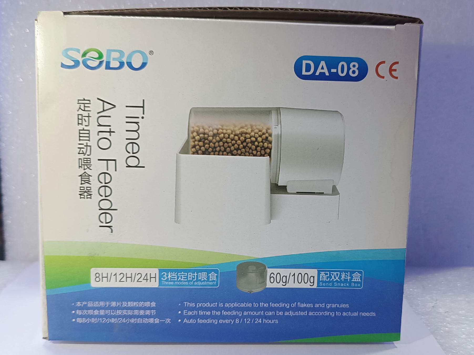 فودتایمر سوبو DA-08 ، یک محصول کاربردی برای غذادهی اتومات و برنامه ريزی شده به ماهیان- غذا ریز خودکار سوبو این امکان را به شما میدهد که در زمانی که به مسافرت یا ماموریت کاری میروید و امکان غذا دهی حضوری را ندارید غذای ماهیان آکواریوم شما را تامین میکند. و دیگر نگران غذا دادن به آبزیان خود در طول مسافرت نخواهید بود.مطمئن ترین راه تغذیه ماهیان در زمان دوری از آکواریوم استفاده از غذا دهنده خودکار است